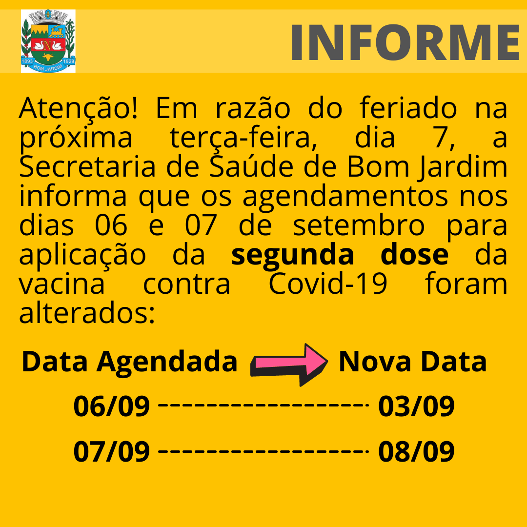 Secretaria de Saúde de BJ divulga novas datas para agendamentos de D2 durante feriado de 7 de setembro