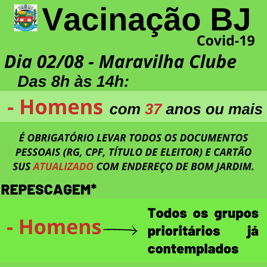 Vacinação contra Covid-19 para grupo de homens com 37 anos ou mais, no dia 02