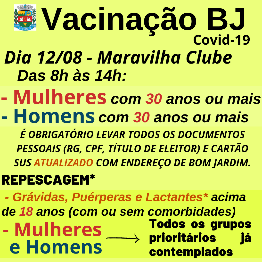 Campanha de vacinação contra Covid-19 em Bom Jardim amanhã, dia 17: 27 anos ou mais