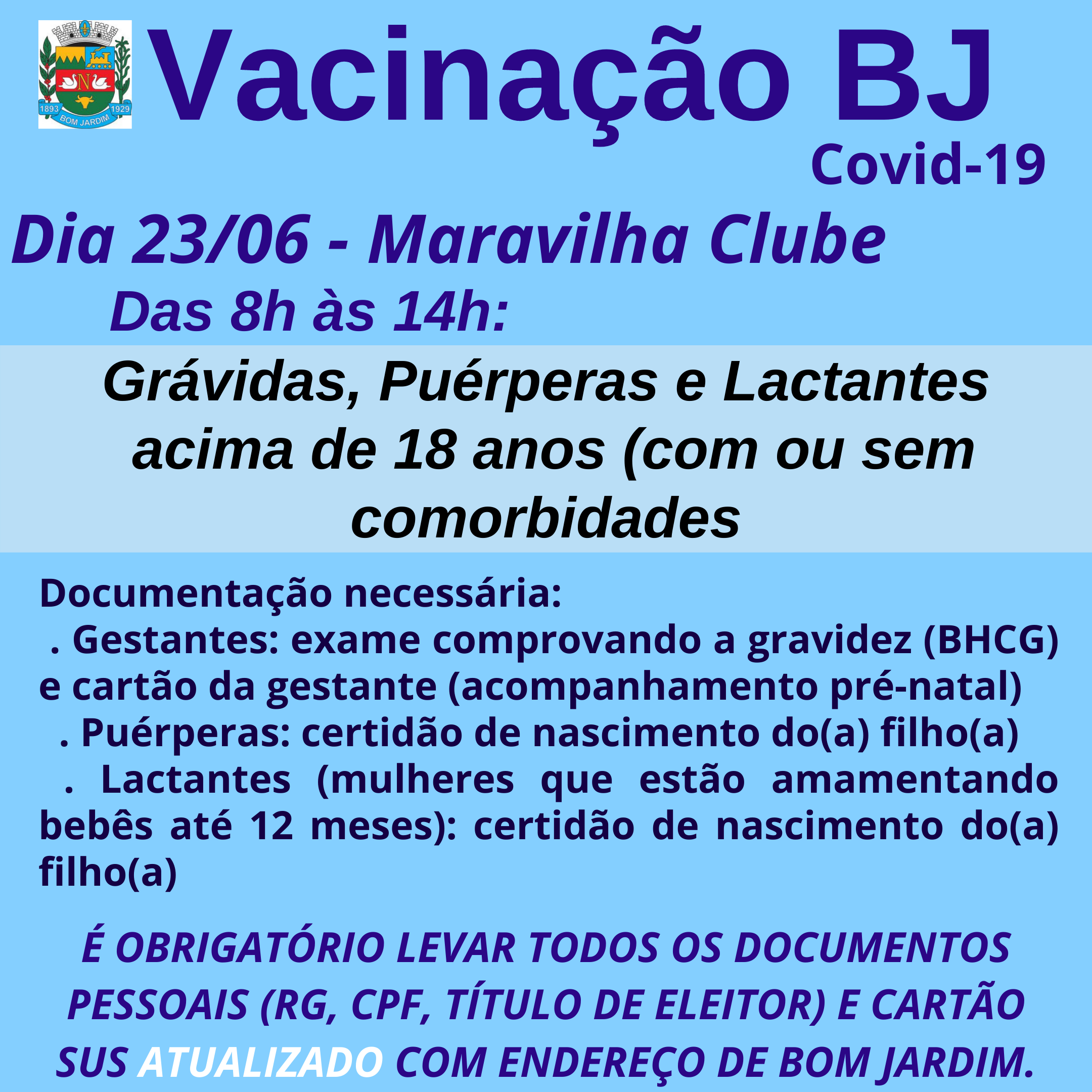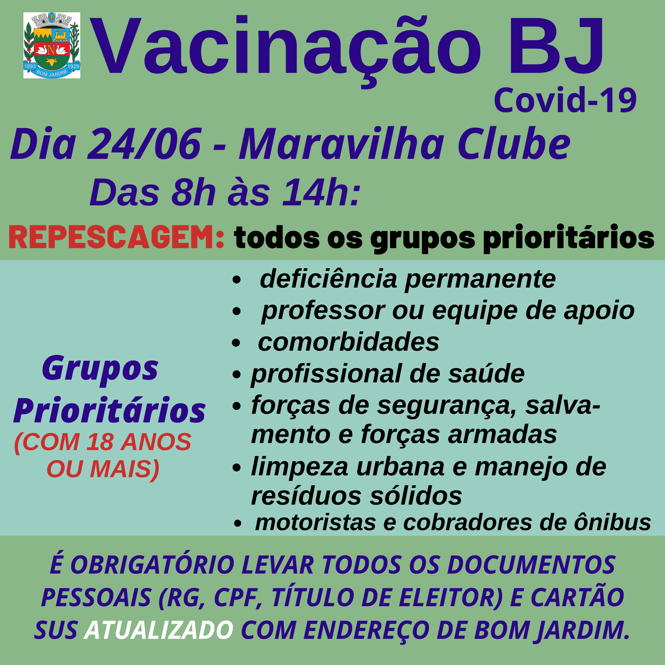 PONTOS DE COLETA: das 09h às 16h.