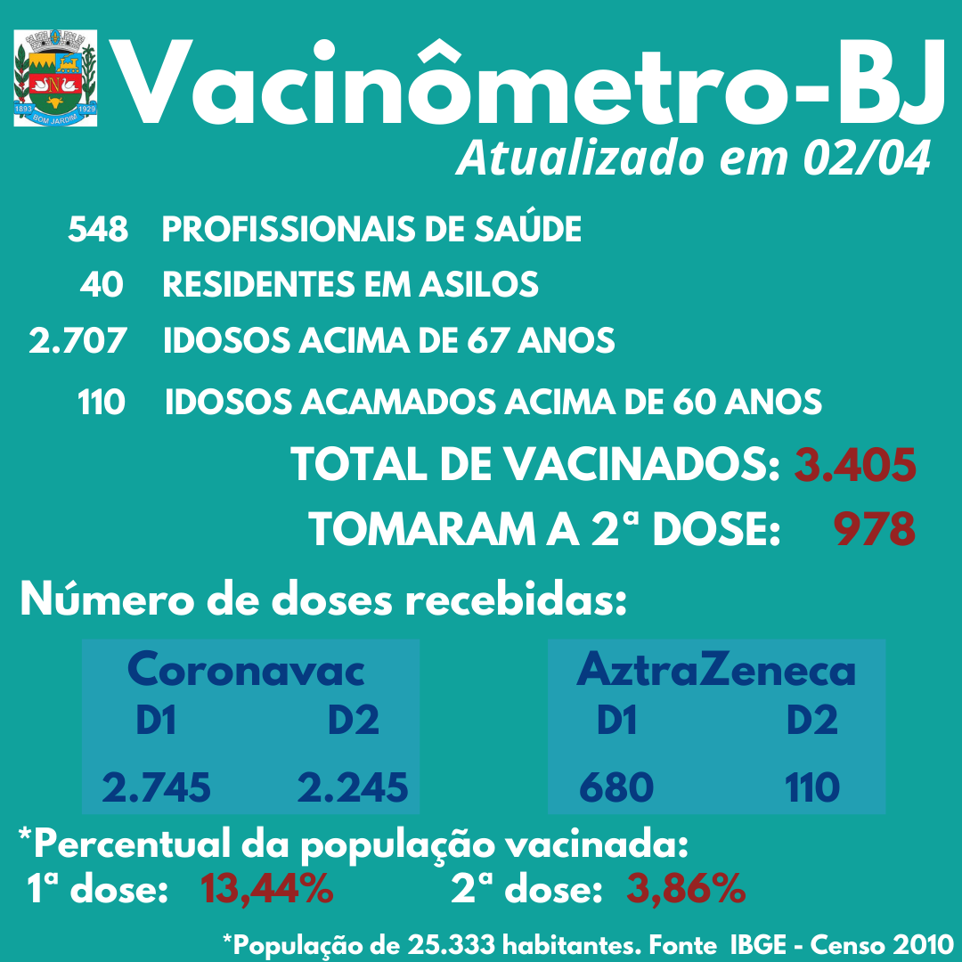 Bom Jardim ultrapassa 4 mil vacinados contra a Covid-19 Vacinômetro - dados atualizados - 16/04