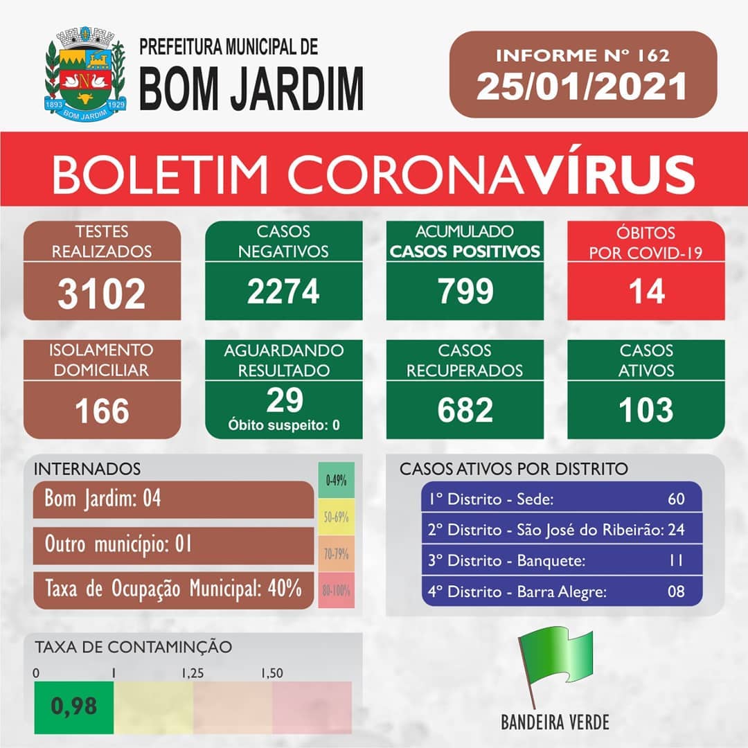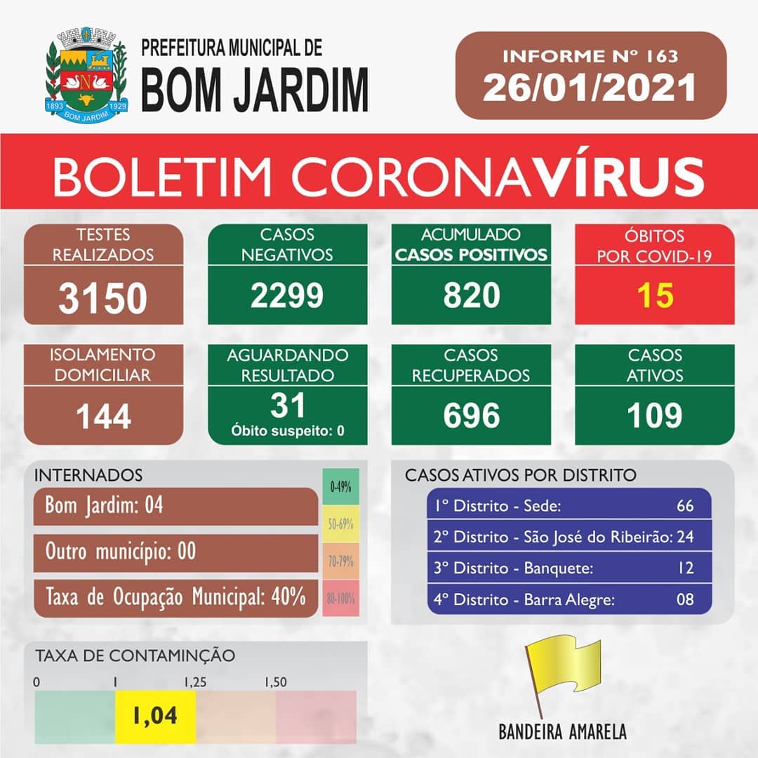 Covid 19Obs.: Alteração do número de leitos no Município de Bom Jardim exclusivos para covid de 10 para 12.