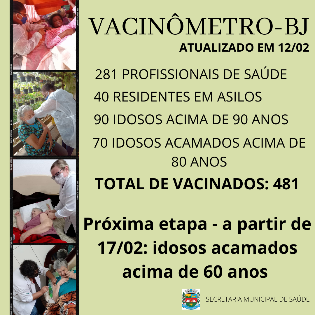 Próxima etapa da vacinação: acamados acima de 75 anosCom a chegada das novas doses, a programação da secretaria de Saúde de Bom Jardim é dar continuidade à vacinação dos idosos acamados, para, em seguida, imunizar os idosos em ordem decrescente de idade. Acompanhe as atualizações da vacinação em nossas redes sociais e através de nosso site oficial (www.bomjardim.rj.gov.br) e fique atento ao cronograma de vacinação, divulgado semanalmente.
