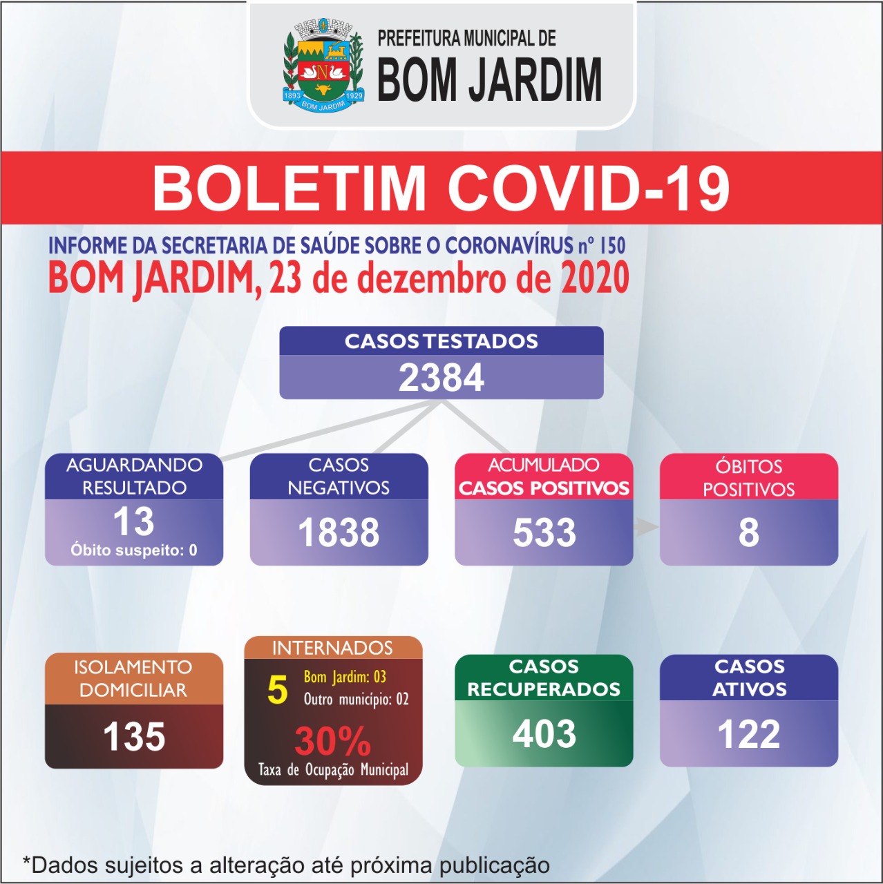 A Secretaria de Saúde de Bom Jardim, seguindo as determinações do Ministério da Saúde, iniciará amanhã, 06, a vacinação contra a Covid-19 em pessoas de 59 anos com comorbidades, além de grávidas e puérperas com comorbidades e o grupo de cuidadores de idosos, atendentes de clínicas e consultórios, e técnicos da área de saúde acima dos 50 anos.A Secretaria alerta que, além dos documentos de Identidade, CPF, Título de Eleitor e CPF, a pessoa deve apresentar a documentação específica definida para cada grupo a ser vacinado.A Campanha de Vacinação contra a Covid-19 em Bom Jardim continua sendo realizada no Maravilha Clube, das 8h às 14h.