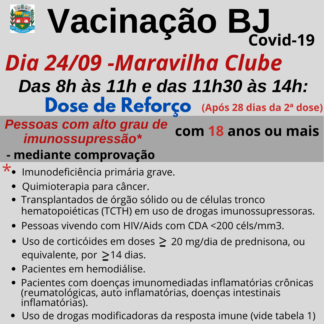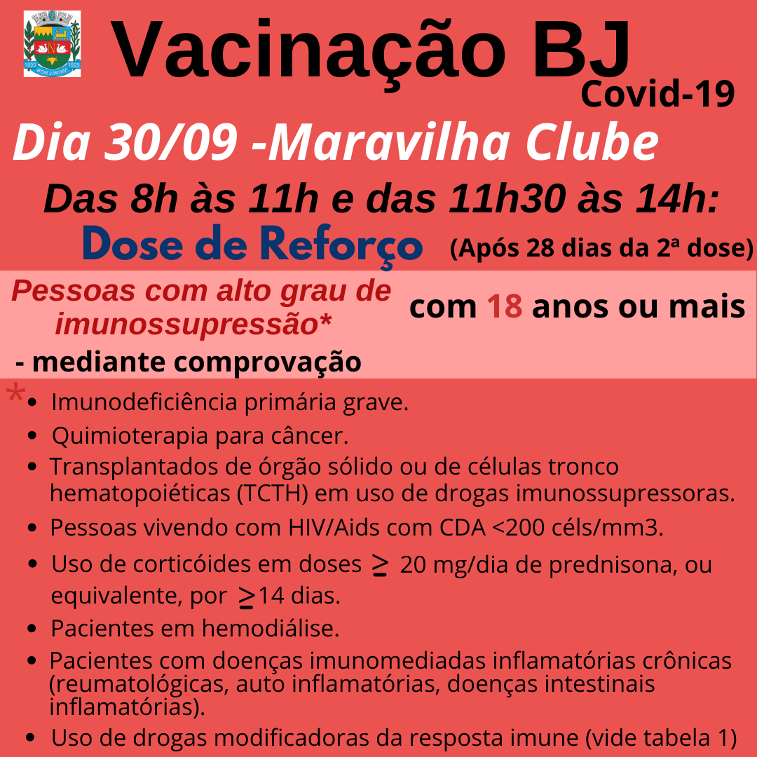 Dose de reforço será aplicada amanhã (7)Reforce a sua proteção!