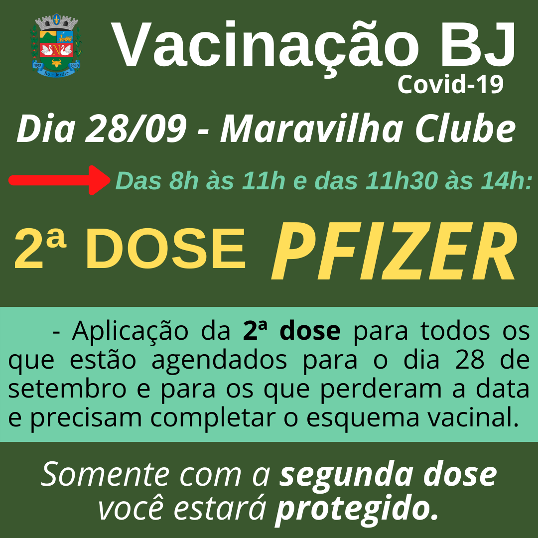Segunda dose no dia 12: PizerA segunda dose garante a imunização. Vacine-se!Vacinas salvam vidas!