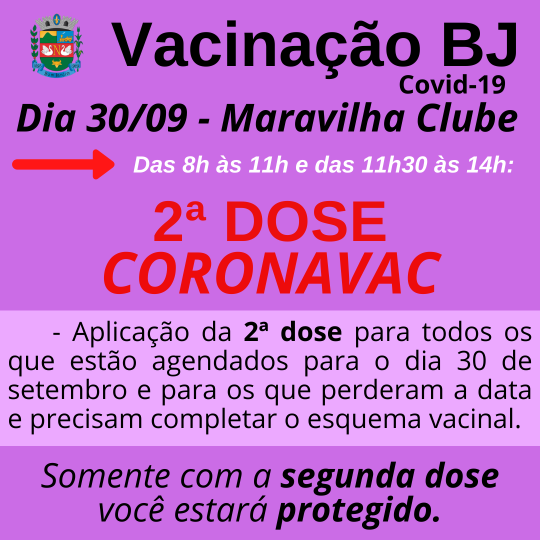 Segunda dose - dia 30 de setembro: Coronavac